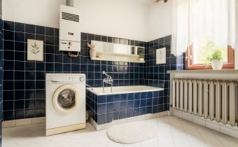 W domu podłączona kanalizacja miejska, woda, gaz oraz prąd. Na działce drzewa.