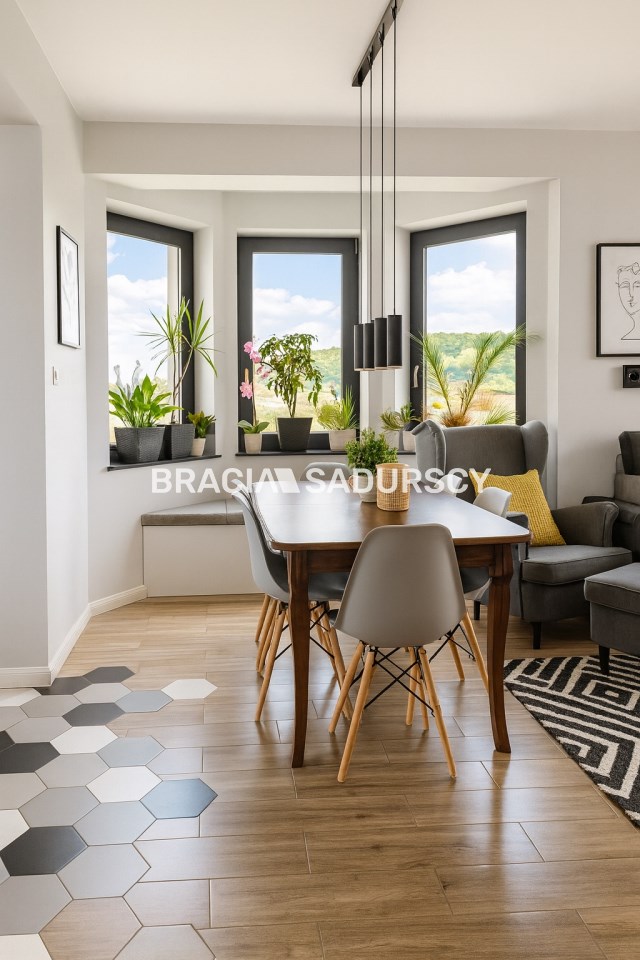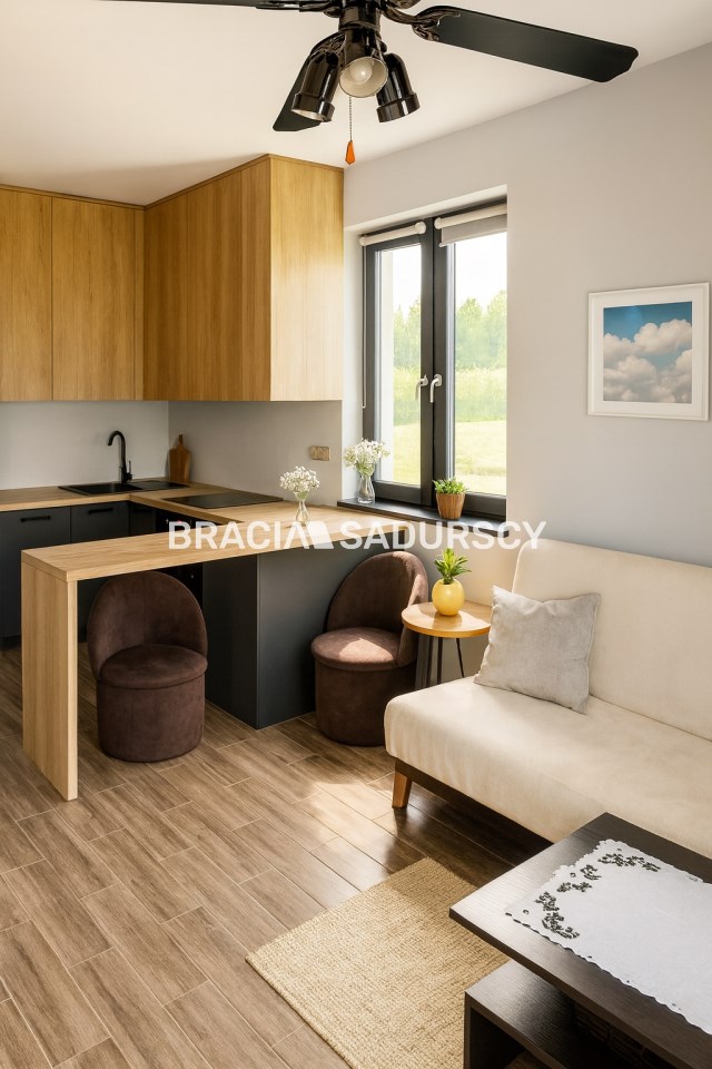 Nieruchomość zlokalizowana jest w spokojnej, zielonej okolicy z szybkim dostępem do Krakowa, a jej największym atutem jest przemyślany układ – dwa niezależne mieszkania z osobnymi wejściami i pełną infrastrukturą.