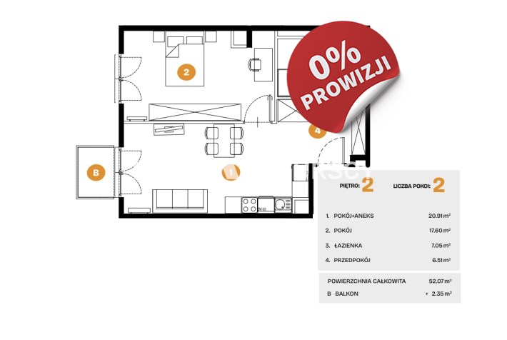 Powierzchnia 52,07 m²